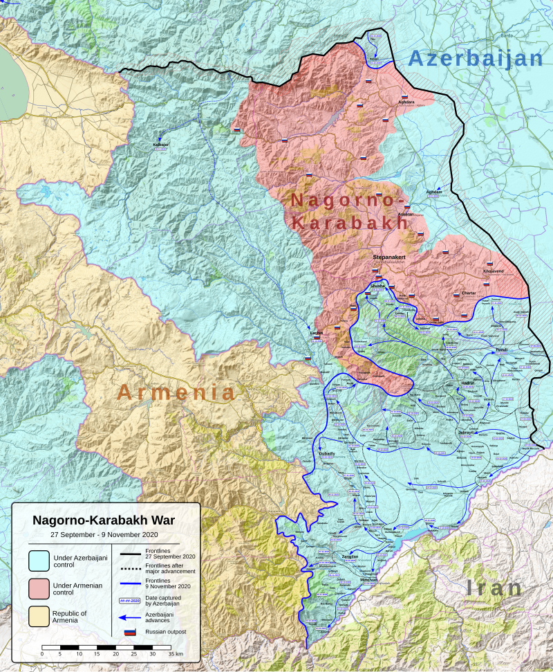 Map of the war showing Azerbaijan's day-to-day advances