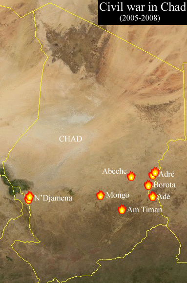 Flashpoints of the Civil war in Chad - Sudan