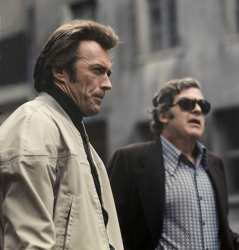 With an unidentified colleague at a film shoot for The Eiger Sanction, 1974