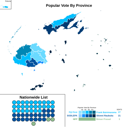 The election was noted for its relatively high voter turnout, with nearly 72% of the registered voters casting their ballots. The main opposition party, the Social Democratic Liberal Party (SODELPA), led by Sitiveni Rabuka, gained approximately 39.85% of the vote, earning 21 seats. The remaining votes and seats were distributed among smaller parties, including the National Federation Party (NFP), which secured three seats.