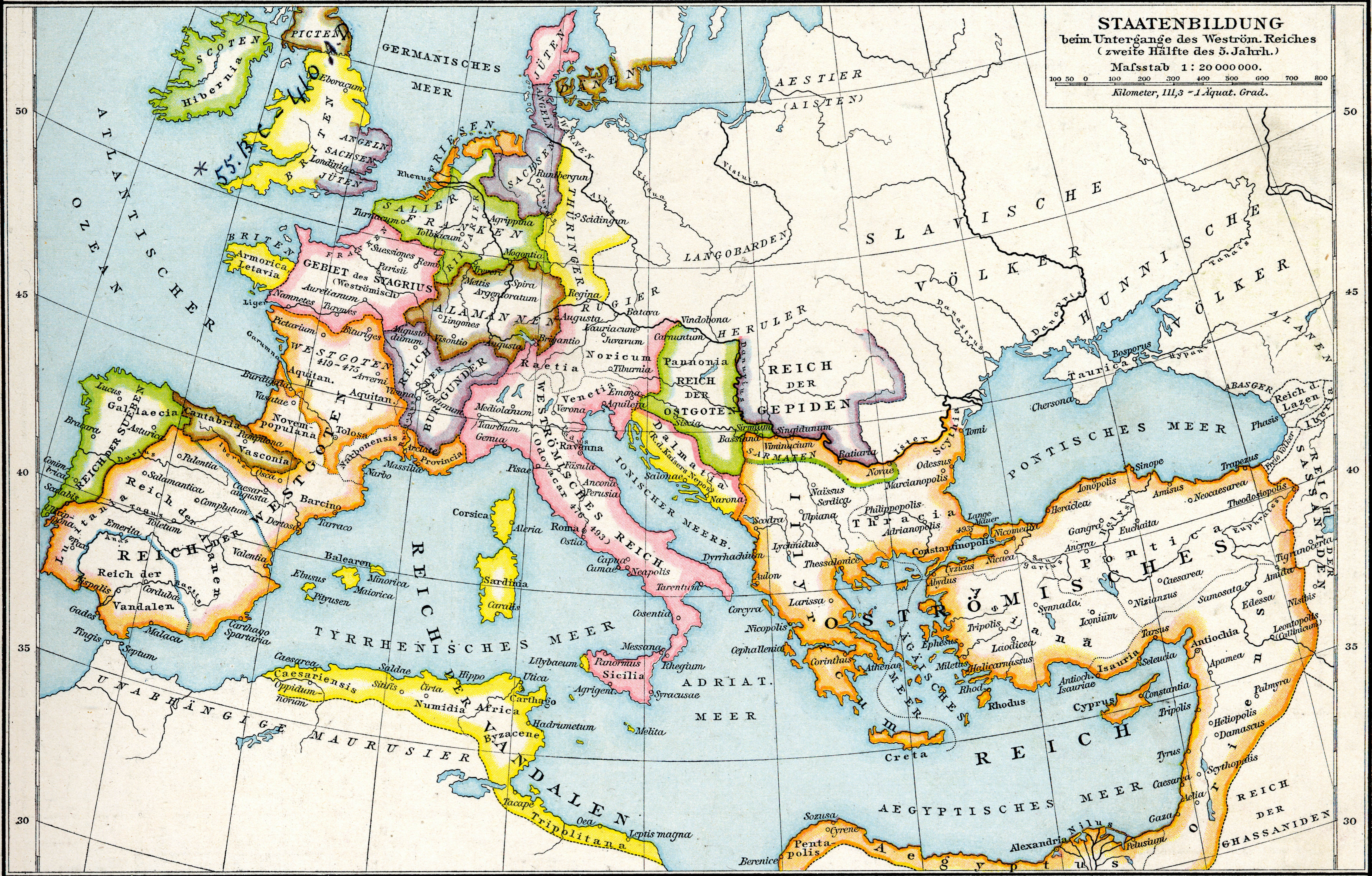 Europe at the fall of the Western Roman Empire in 476