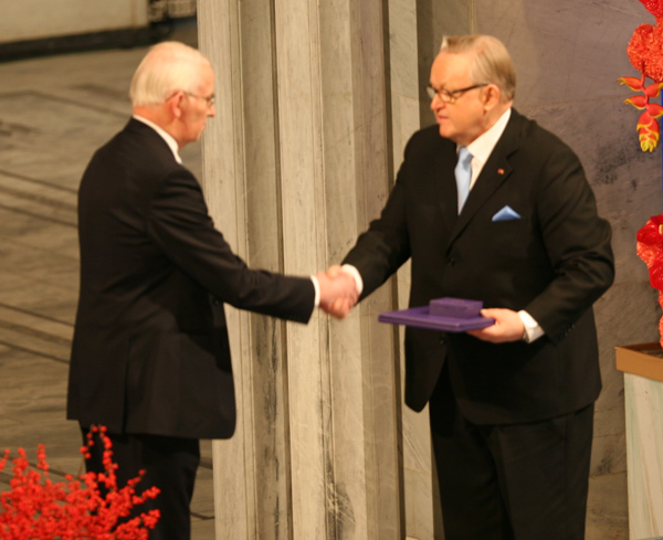 | Artist: Harrywad | Credit: Own work | Creative Commons License: https://creativecommons.org/licenses/by/2.5 | Description: Nobel Peace Prize 2008, Martti Ahtisaari