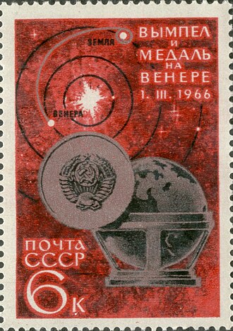 1966 Soviet Union 6 kopeks stamp. Venera 3 Pendant and Medal.